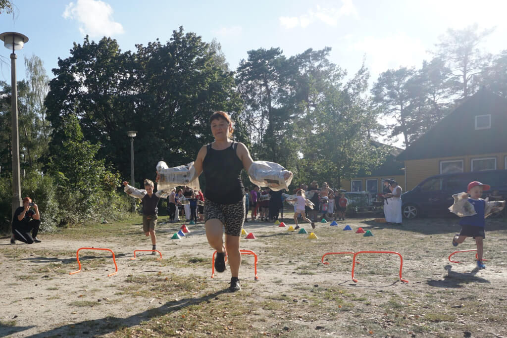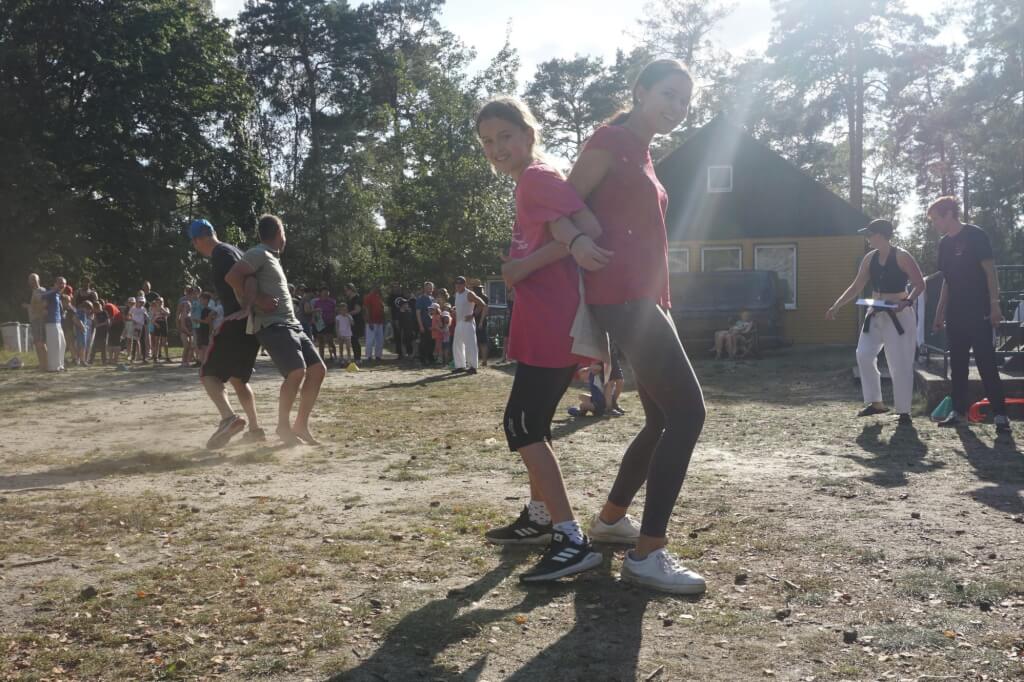 Relativ human startete der Samstag um 08.00 Uhr mit dem Frühsport. Nadine versuchte sich daran, die Kleinsten und Jüngsten unter uns mit kindgerechten Wachmacher- Übungen wach zu machen.